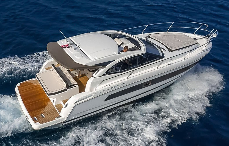 Avec ses 11,62m de long et ses 3,62m de large, le Leader 36 du constructeur Jeanneau a été conçu pour profiter des plaisirs de la mer et du soleil, le bateau idéal pour des croisières de courte durée en famille ou entre amis.